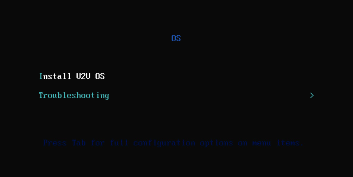 After creating the virtual machine, open the virtual machine console, select Install V2V OS, and then press Enter.